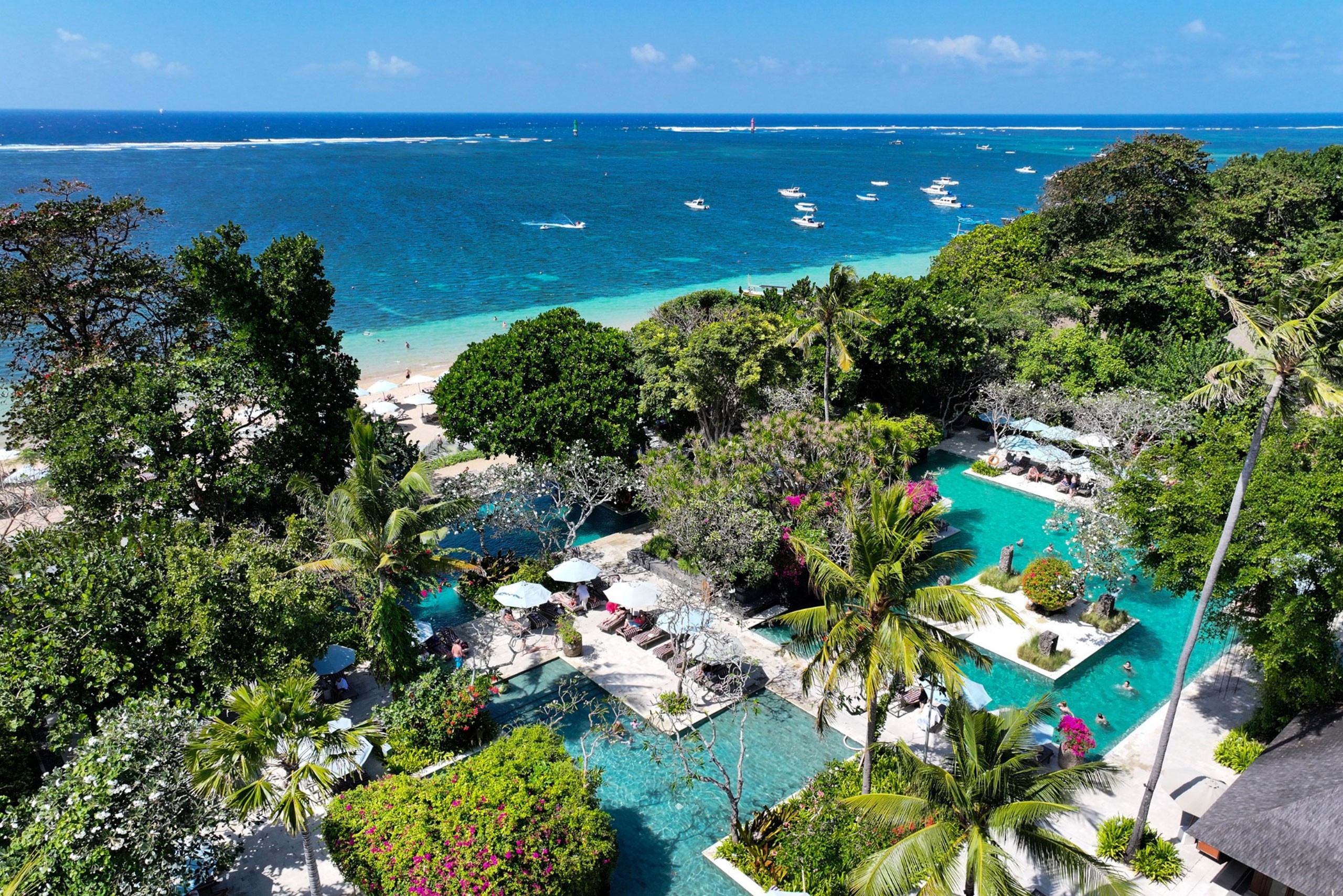 Set along Sanur’s beachfront promenade, Hyatt Regency Bali offers a relaxed and spacious setting for families. The Camp Hyatt kids’ club includes a charming outdoor playground surrounded by tropical gardens. It’s a peaceful yet engaging environment that pairs perfectly with the resort’s laid-back coastal vibe.