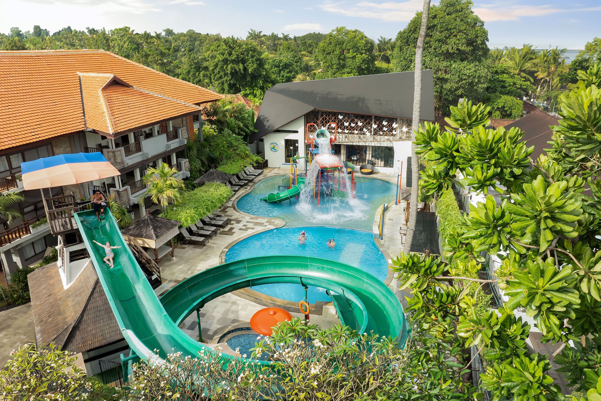Bali Dynasty Resort is purpose-built for families and is widely known for its dedicated kids’ facilities. The Kupu-Kupu Kids Club and outdoor playground are complemented by a water park with slides and splash zones, making it one of the most fun-filled family resorts in South Bali.