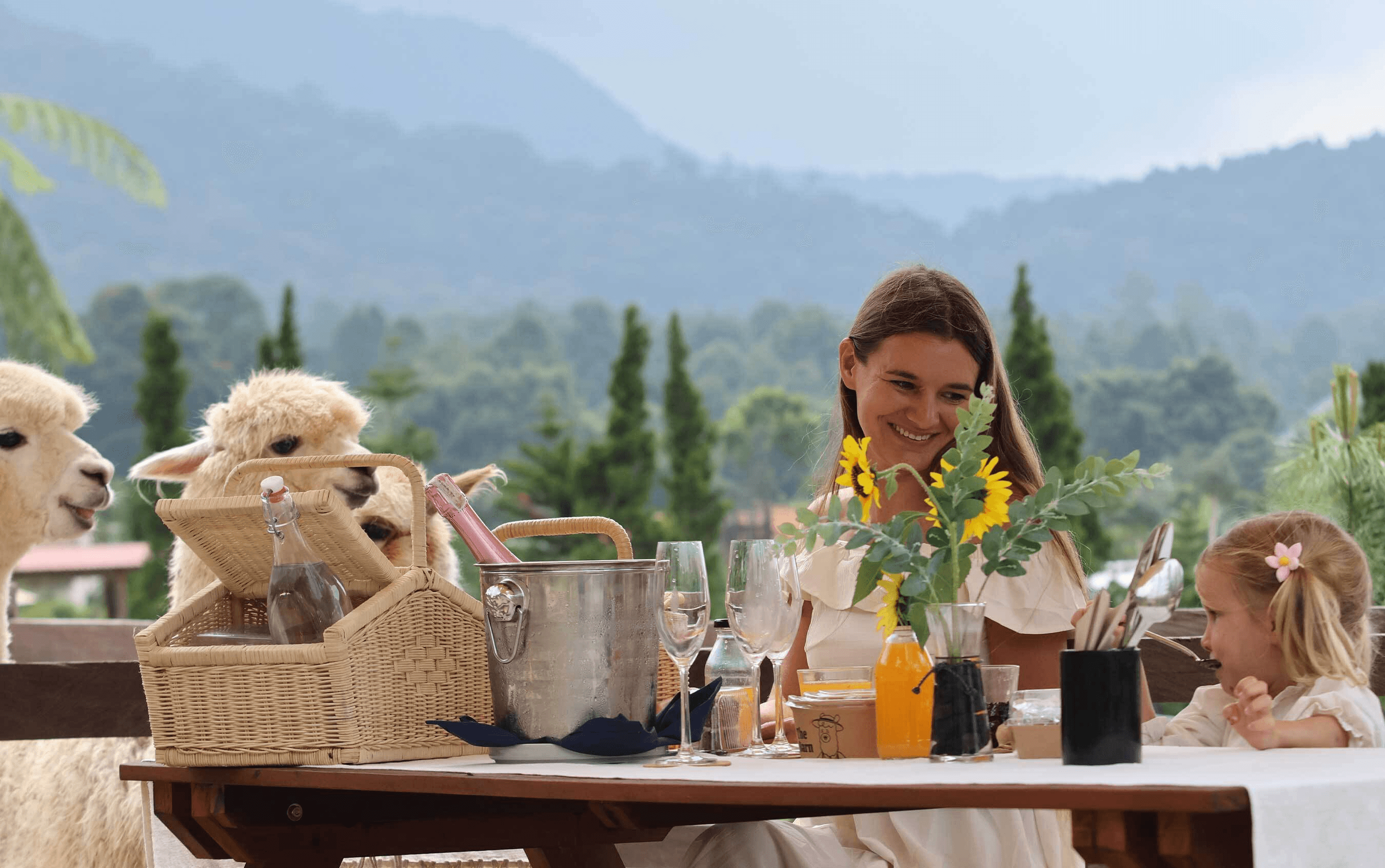 Bali Farm House offers more than just a destination, it’s a place where families can reconnect with nature and each other. The Brunch with Alpaca program brings together a relaxing dining experience and meaningful interactions with the animals, especially the adorable alpacas.