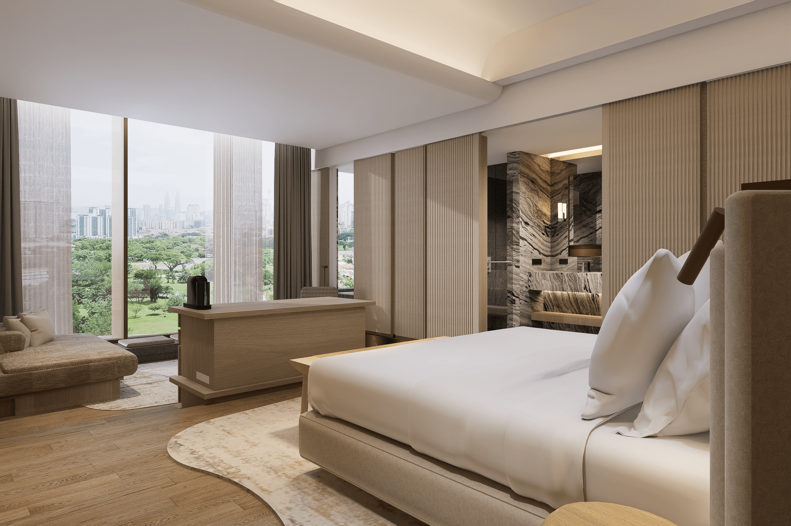 Designed by Studio Air Putih, the hotel has been conceived as a portal through time, where heritage meets modern luxury. Guests will be welcomed by a grand entrance framed by high ceilings and curved walls, creating a sense of anticipation from the moment they arrive. Inside, red brick walls, warm timber accents, and white quartz marble floors strike a balance between traditional character and contemporary refinement.