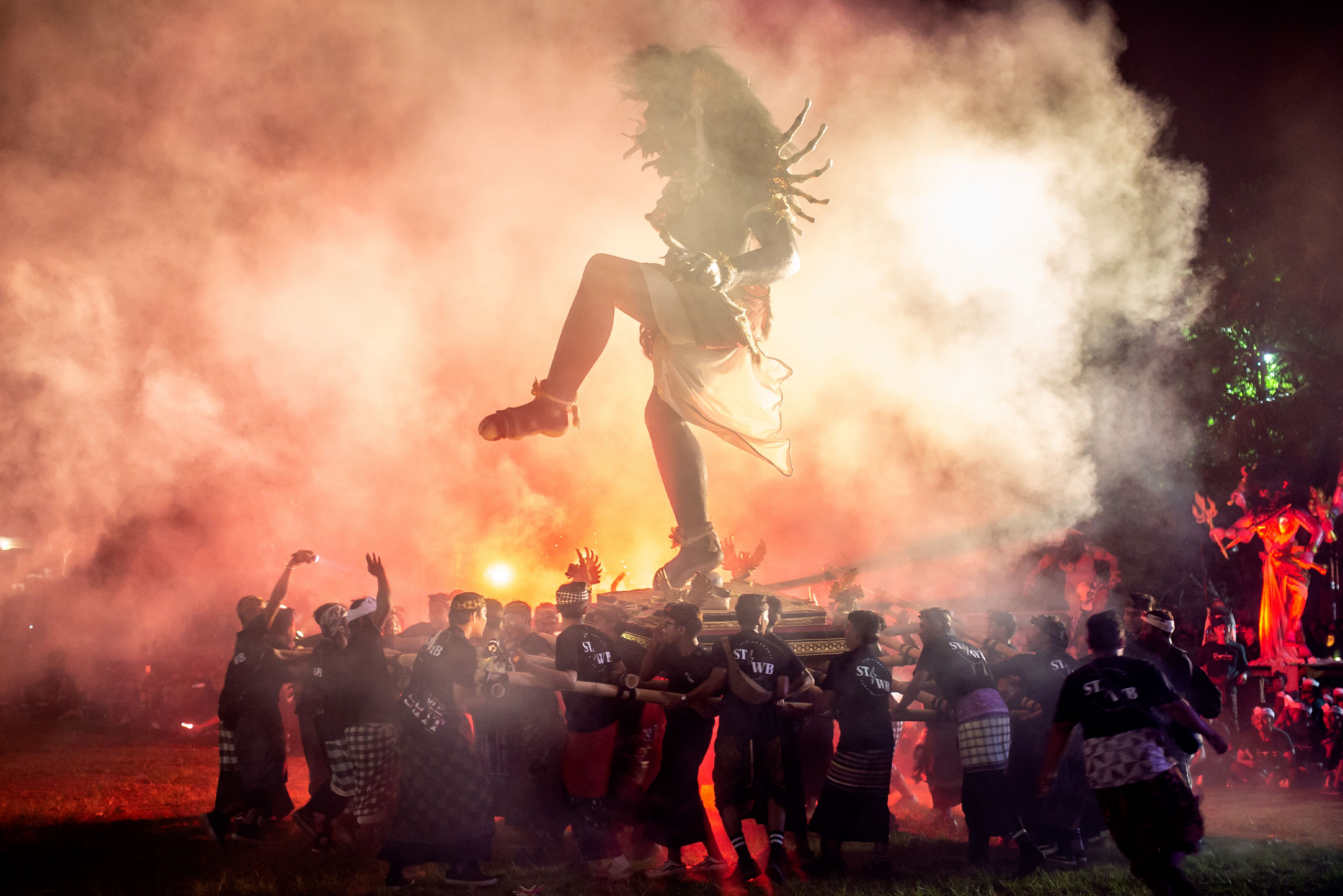 On the eve of Nyepi in Bali, villages come alive with Ogoh-ogoh parades. These towering, hand-crafted effigies represent Bhuta Kala, negative forces such as greed, anger and chaos.