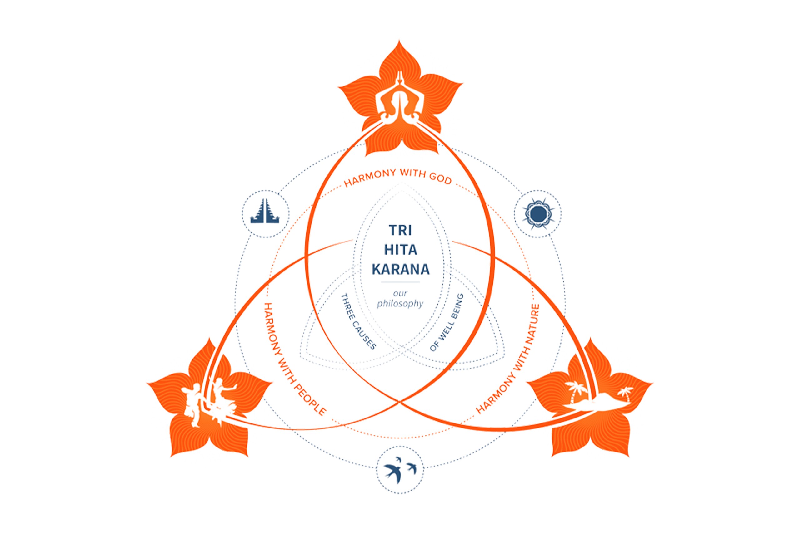 Even as Bali grows busier and more dynamic than ever, this harmony endures. Beneath the traffic, the development and the pace of modern life sits Tri Hita Karana, the guiding philosophy that has shaped Balinese culture for generations. Tri Hita Karana translates to the “three causes of well-being”, a framework for living in balance with the divine, with other people, and with nature.