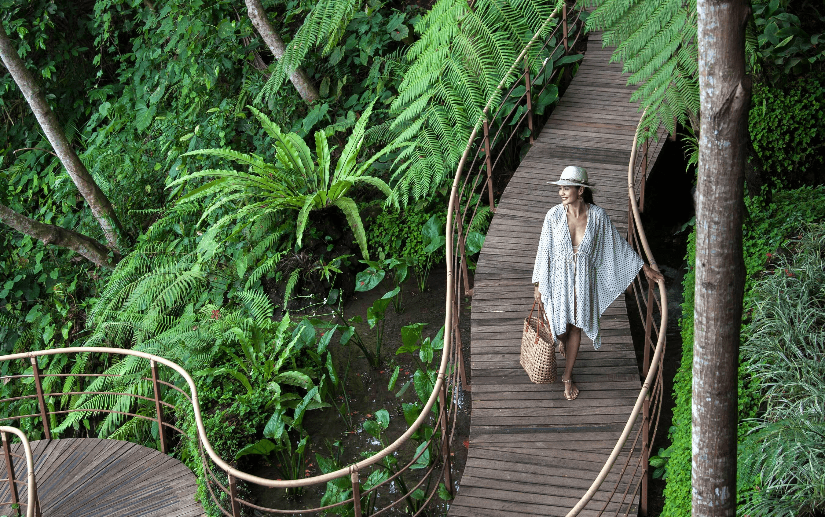 Perched on a slope overlooking the Campuhan River valley, Komaneka at Bisma offers suites and villas that provide breathtaking views of the surrounding tropical forest and the resort’s own rice fields. This sanctuary effortlessly blends Balinese tradition with modern living, offering guests the chance to experience the essence of Ubud in both comfort and style. The resort’s elegant design and tranquil setting create the perfect backdrop for a deeply immersive escape, where contemporary luxury coexists with Bali’s rich cultural heritage.